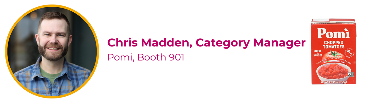 "Another brand attending our Tabletop Show for the first time, Pomi ran their first INFRA Deals promo this March. I’ve been using their tomato paste, chopped tomatoes, and strained tomatoes in my own kitchen for years to create incredibly delicious pasta and pizza sauces. I am delighted to have them join us this year!"