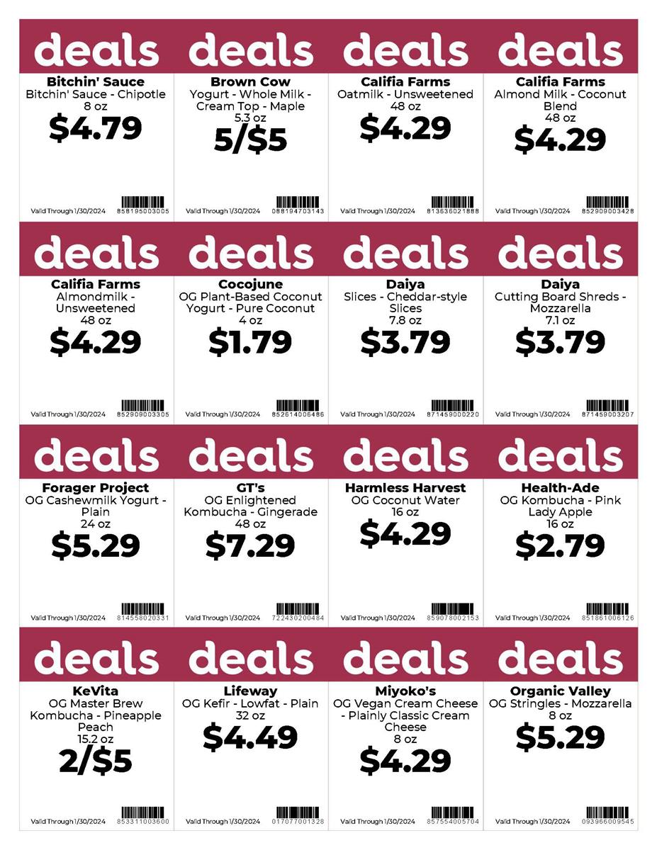 Over the final quarter of 2023, we have been trialing updated promotional signage. The plum Deals signs come in a 16-up size to improve shopability, minimize the overhang that sometimes blocks product at the shelf, and reduces the raw materials needed to print signage. With a clear Deals callout and striking color block at the top, these eye-catching signs support positive price perception for shoppers!